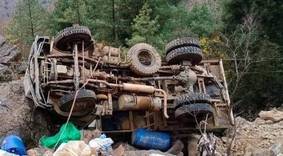 सडकबाट झन्डै २०० मिटर तल खस्यो टिपर, चालकको मृत्यु